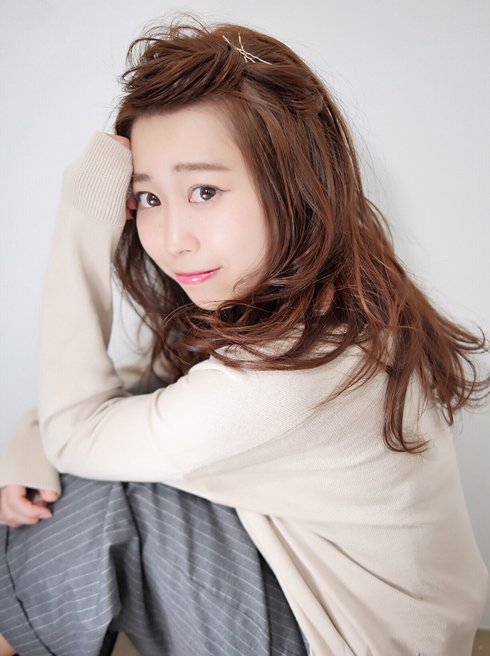 伸ばしかけの前髪はネジってピン!少しふんわりさせるととても可愛いですよ^^!