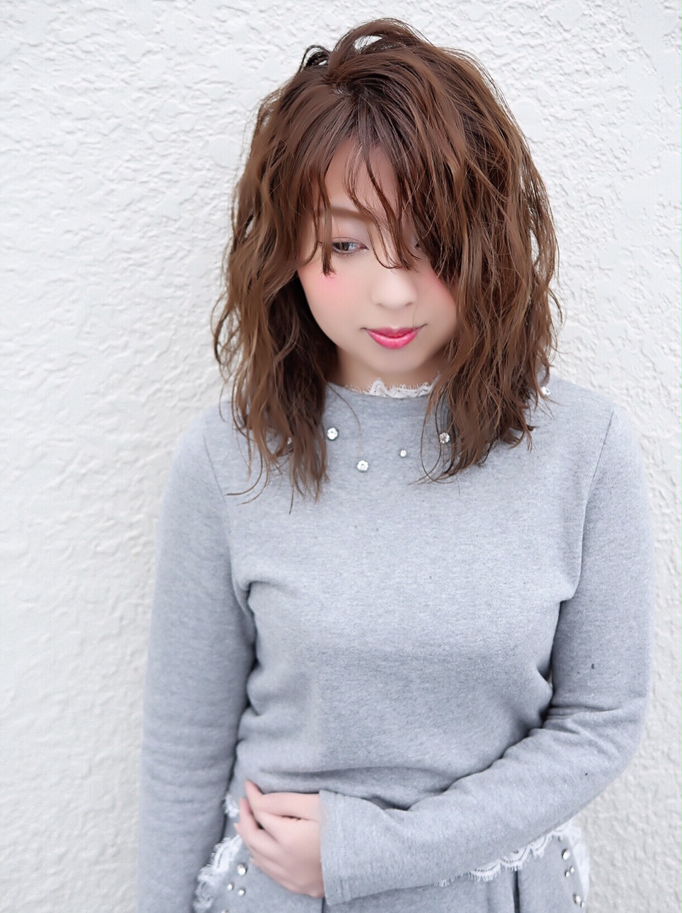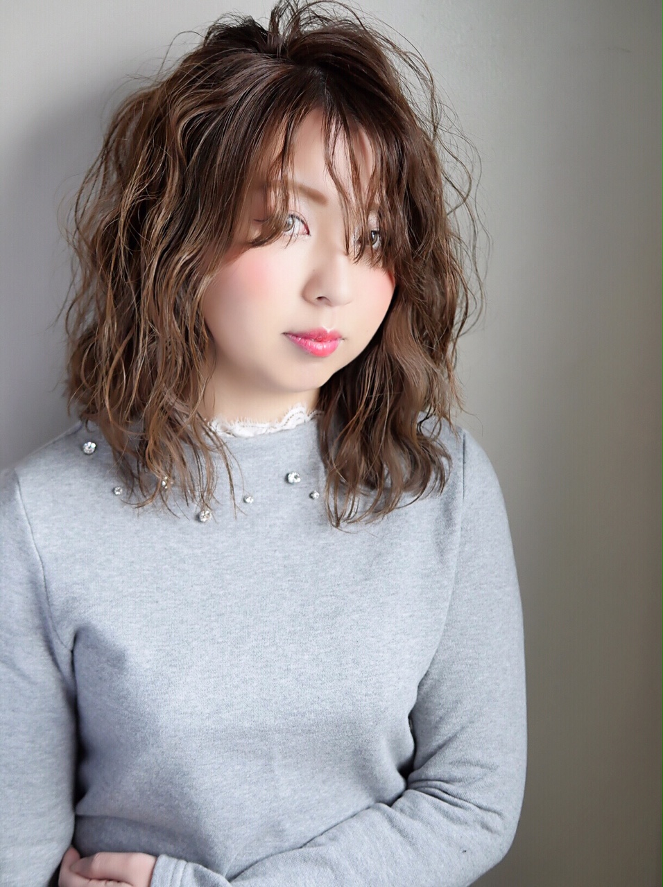 波ウェーブとウェッティーな質感で夏っぽく仕上げました。うざったバングとボブディーで大人カジュアルに。