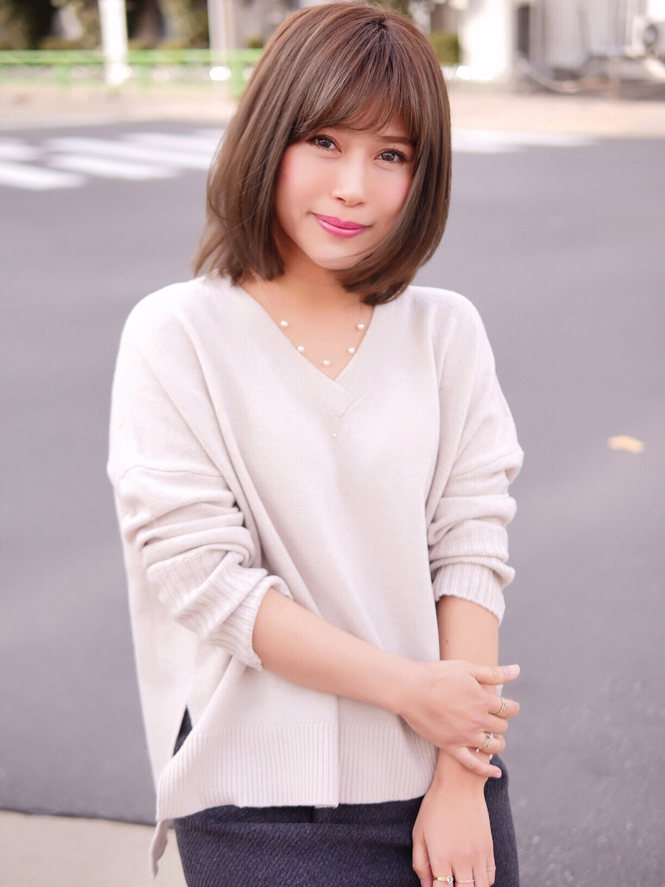 大人気のアゴラインのグラデーションボブ。透明感溢れるカーキグレージュで大人っぽく!