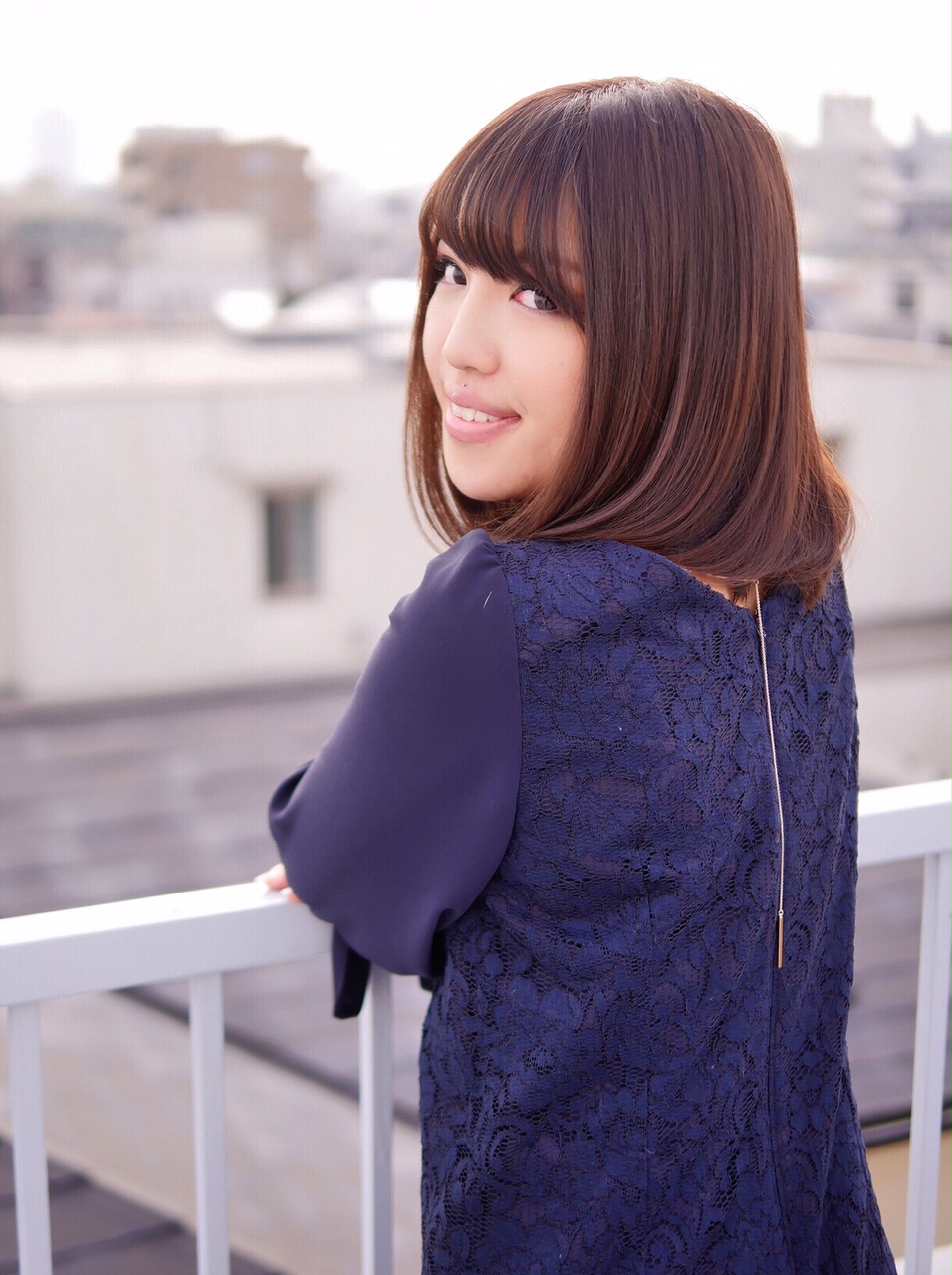 落ち着いたナチュラルブラウンに、レイヤーがほぼ入ってないワンレンスタイル。毛先をコテで巻いてフェミニンに。