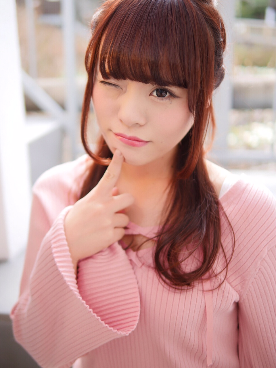 重め、前髪、ピンクカラー、とことんフェミニンに可愛く。男の子ウケはバッチシです^^