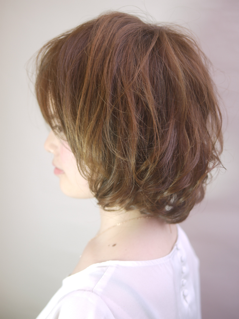 伸ばしかけのボブスタイルには、パーマがおすすめです。ムースや柔らかいWAXをよく揉みこんでスタイリングするとフワっとした仕上がりになります♪