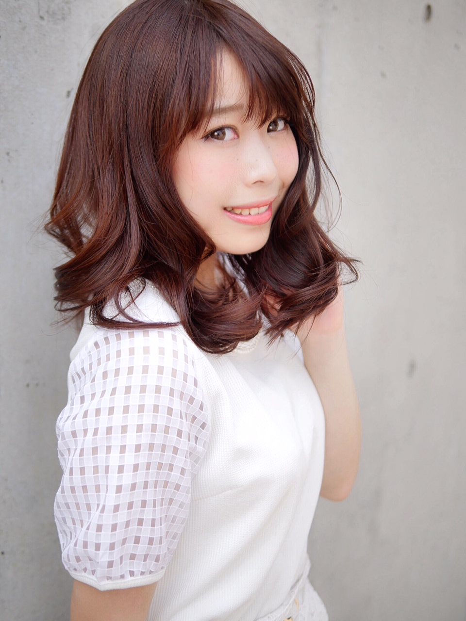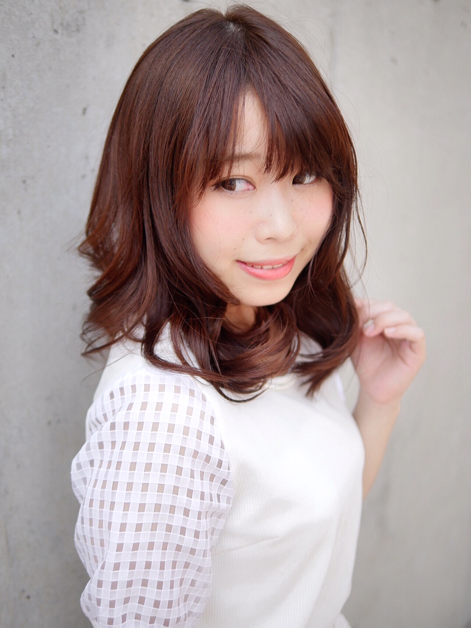 レイヤースタイル。ミックスのボリューム巻きで大人可愛く。バングも作ってさらにキュートに。コテでミックス。パーマをかける場合は、ワンカールくらいのパーマがおすすめ!