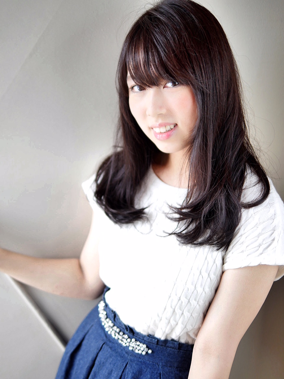 暗髪には、巻きすぎないスタイルがマスト!緩く内巻きに巻いた髪が女性らしさを引き出します。