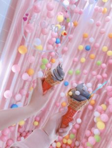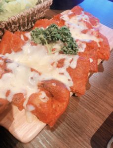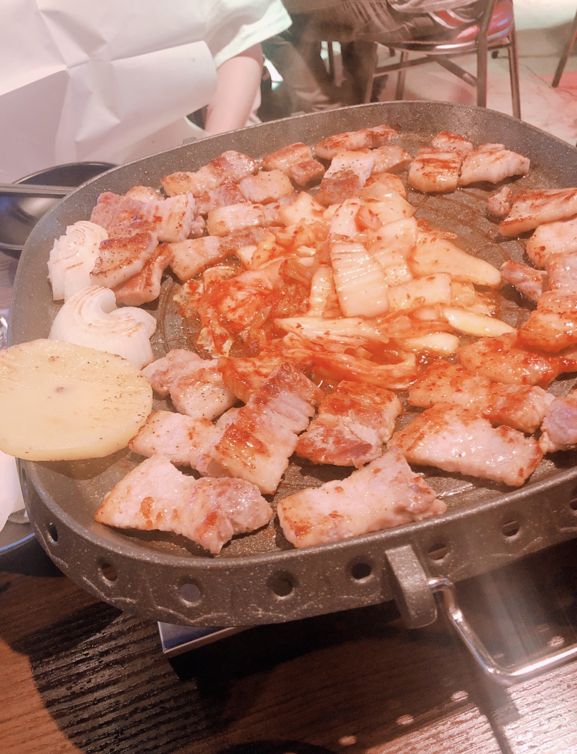 この写真は「coisof」のゴマソフトと「밀땅포차(ミルタンポチャ)」のサムギョプサルとキムチチヂミです
