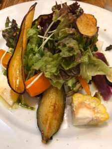 オススメのハンバーガーランチは是非サラダ付おセットをたのんでください。焼き、ゆで、生、揚げといったその食材がよりおいしく食べられる調理法でつくられたサラダは味と食感でとても楽しめます。