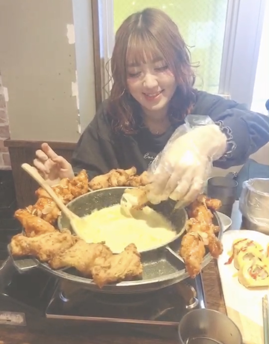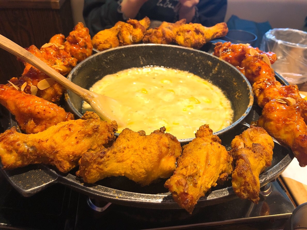 流行りのチキンにチーズつけて食べるやつーーーーー(^q^)40分くらいならびました笑笑