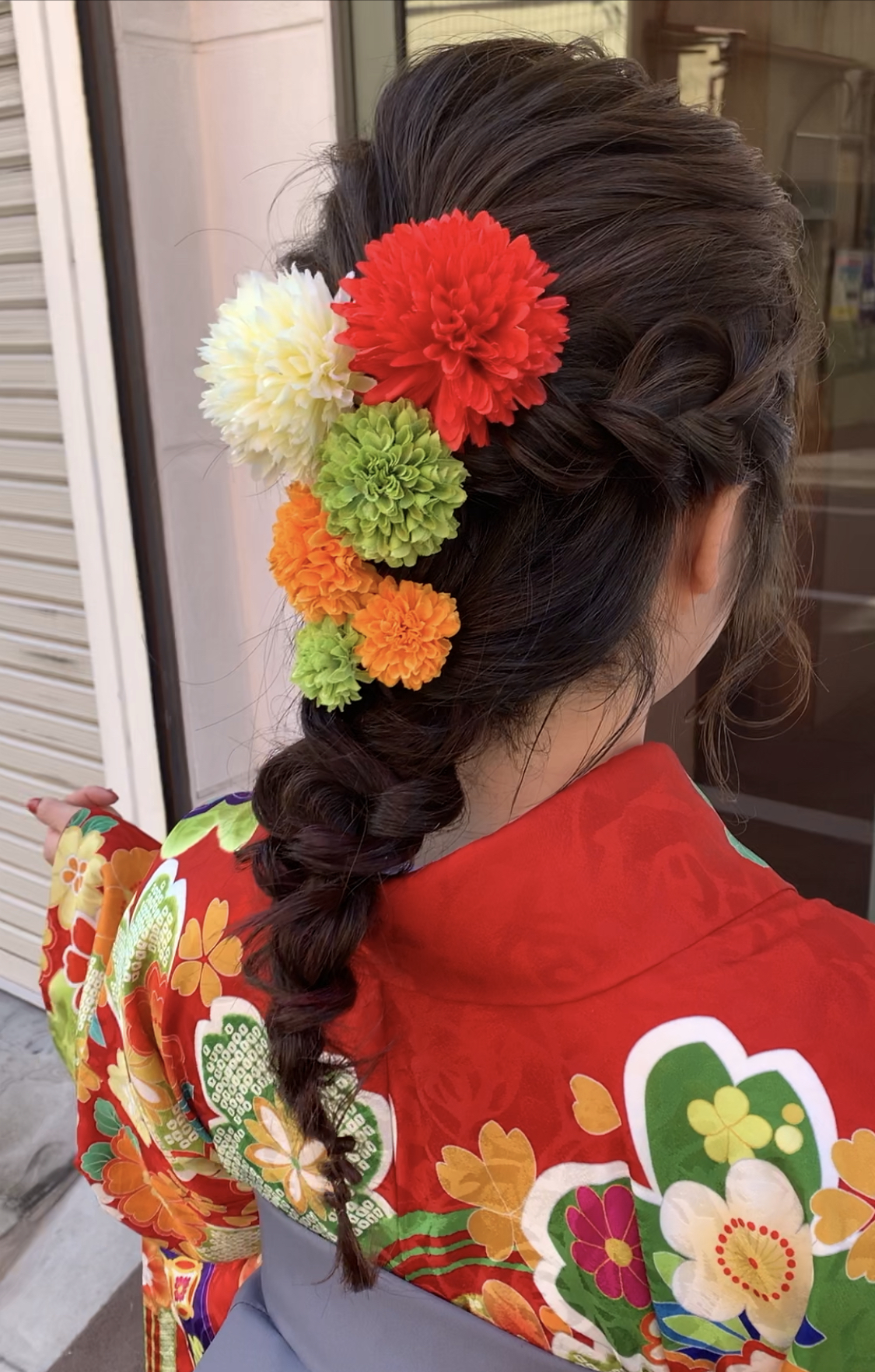 髪は三つ編み下ろしヘア😃タマネギヘアも迷ったけど、インナーカラーもしていたので編み下ろしにしました😃