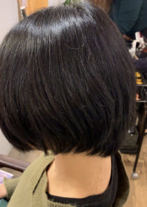 伸びたボブスタイルを軽めにしたあと、