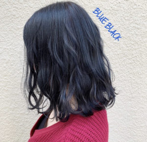 こちらはSachiko作のブルーブラック!ブリーチ1回の明度で、ブルーで黒染めすると光に当たった時にこんな感じになります!