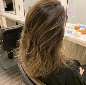 根本は白髪染め、毛先はハイライト。