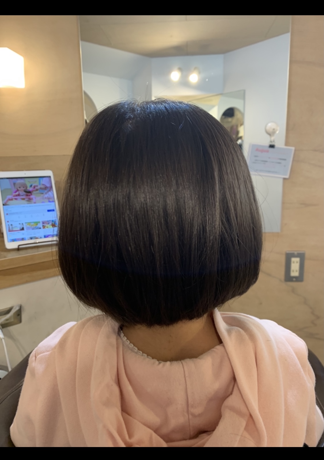 肩につかないぐらいまでしっかり切ると跳ねにくいですし、お父さんお母さんもお風呂あがりかなり楽になるんじゃないでしょうか?(*^^)v