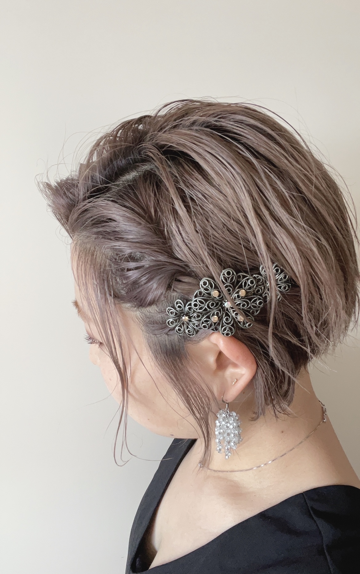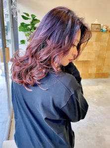 青みを含んでいるラベンダーカラーは、日本人特有の髪の赤みや黄色みを抑えて、
