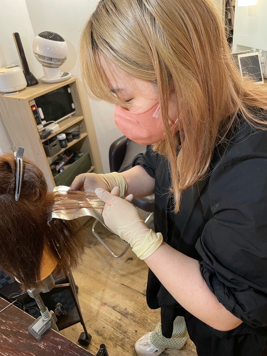 空き時間には、ハイライトカラーの練習をしています。とても難しいですが、やっていくうちにどんどん楽しさがわかってきました。