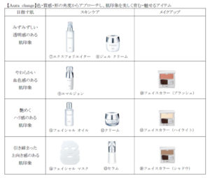 スキンケアとメイクアップ合わせて18品目23品種あります