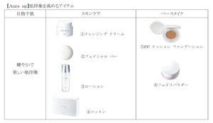 主な商品には、肌との親和性に優れたアミノ酸由来の生体類似成分でできたカプセル内に、コーセーオリジナル成分のベビーアップルエキスを配合されてます