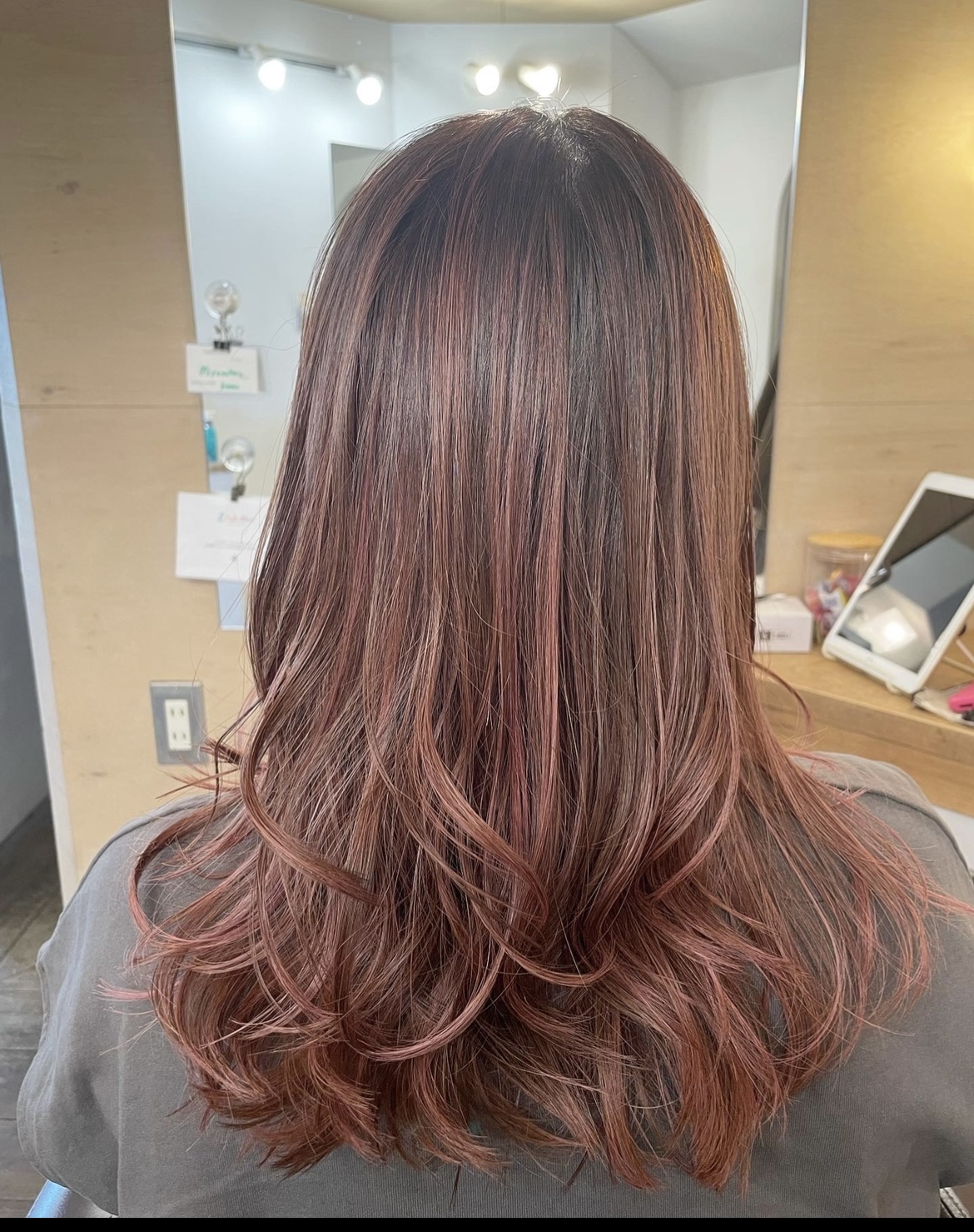 これぐらい薄いピンクだとブリーチ2.3かいは必要かなと思います!