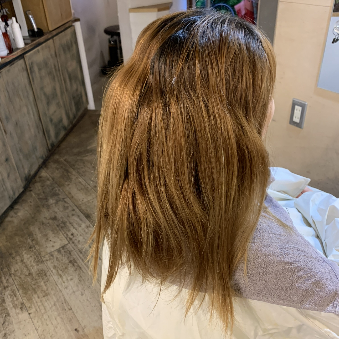 ブリーチ履歴ありですが、毛先に残留色素あり。