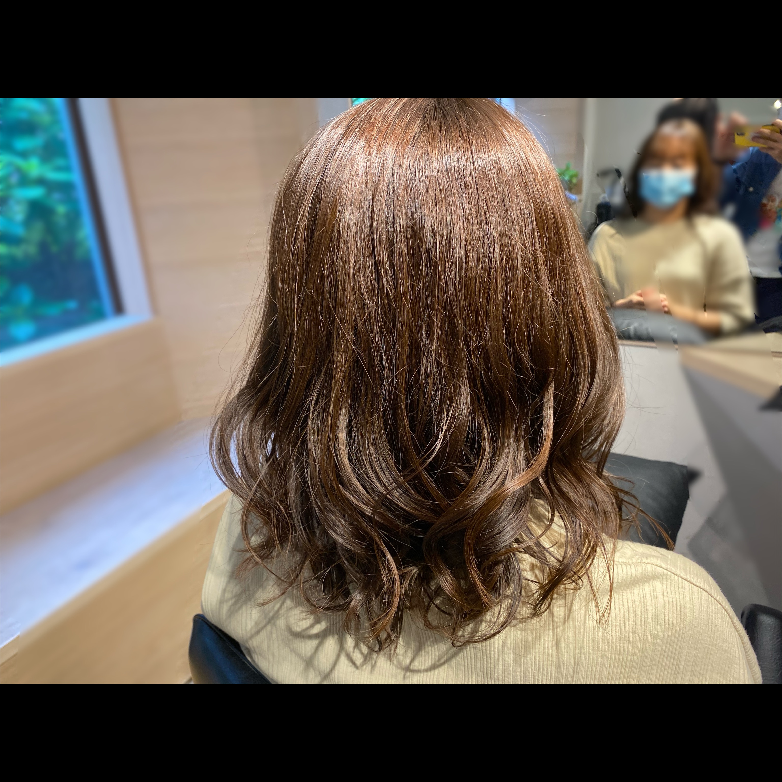 トップにボリュームを出して、顔周りにレイヤーを入れることで、小顔効果が期待できます。