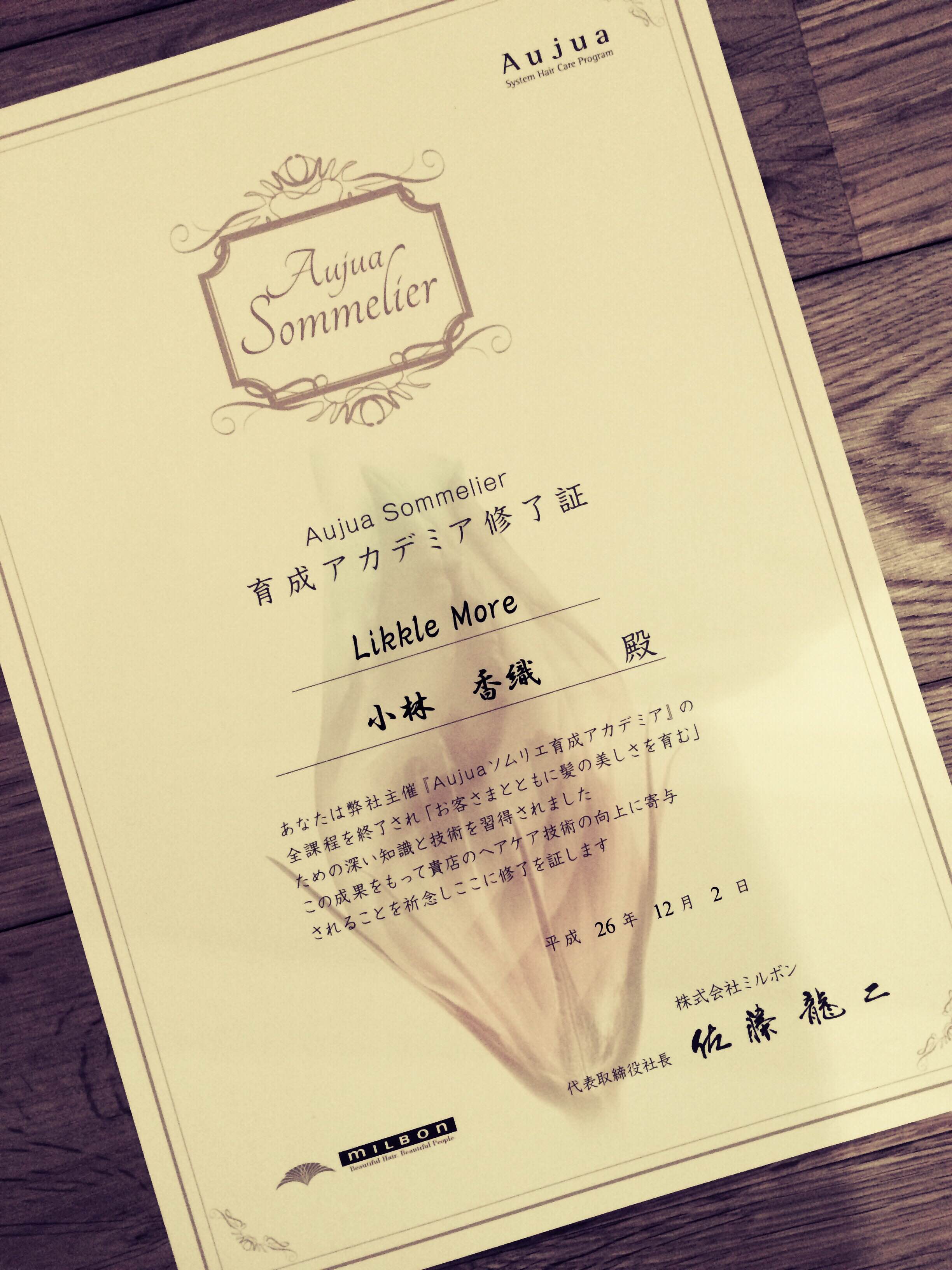そしてさらに個人でも講習を受けると、オージュアから認定書をもらえます。