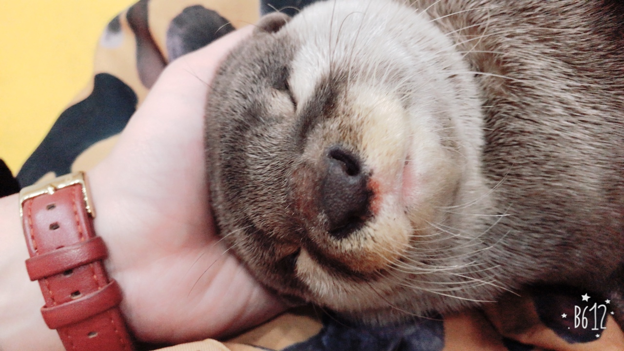 が、お姉さんが寝てるカワウソちゃんをヒザの上に乗っけてくれて悶絶