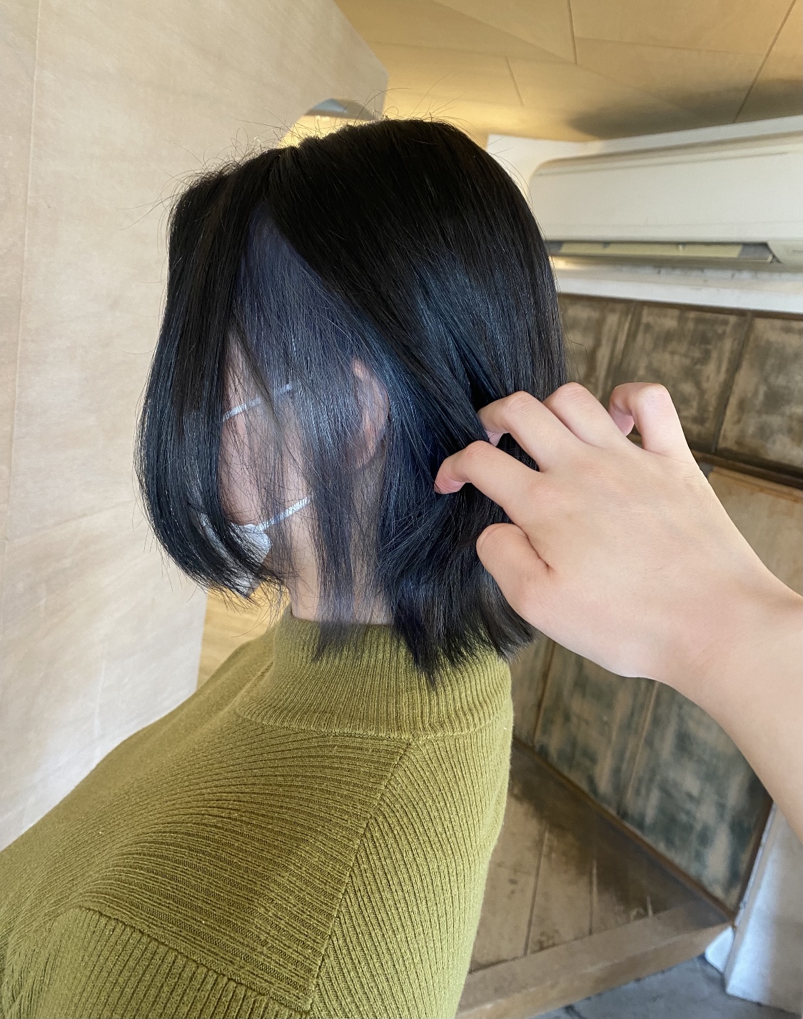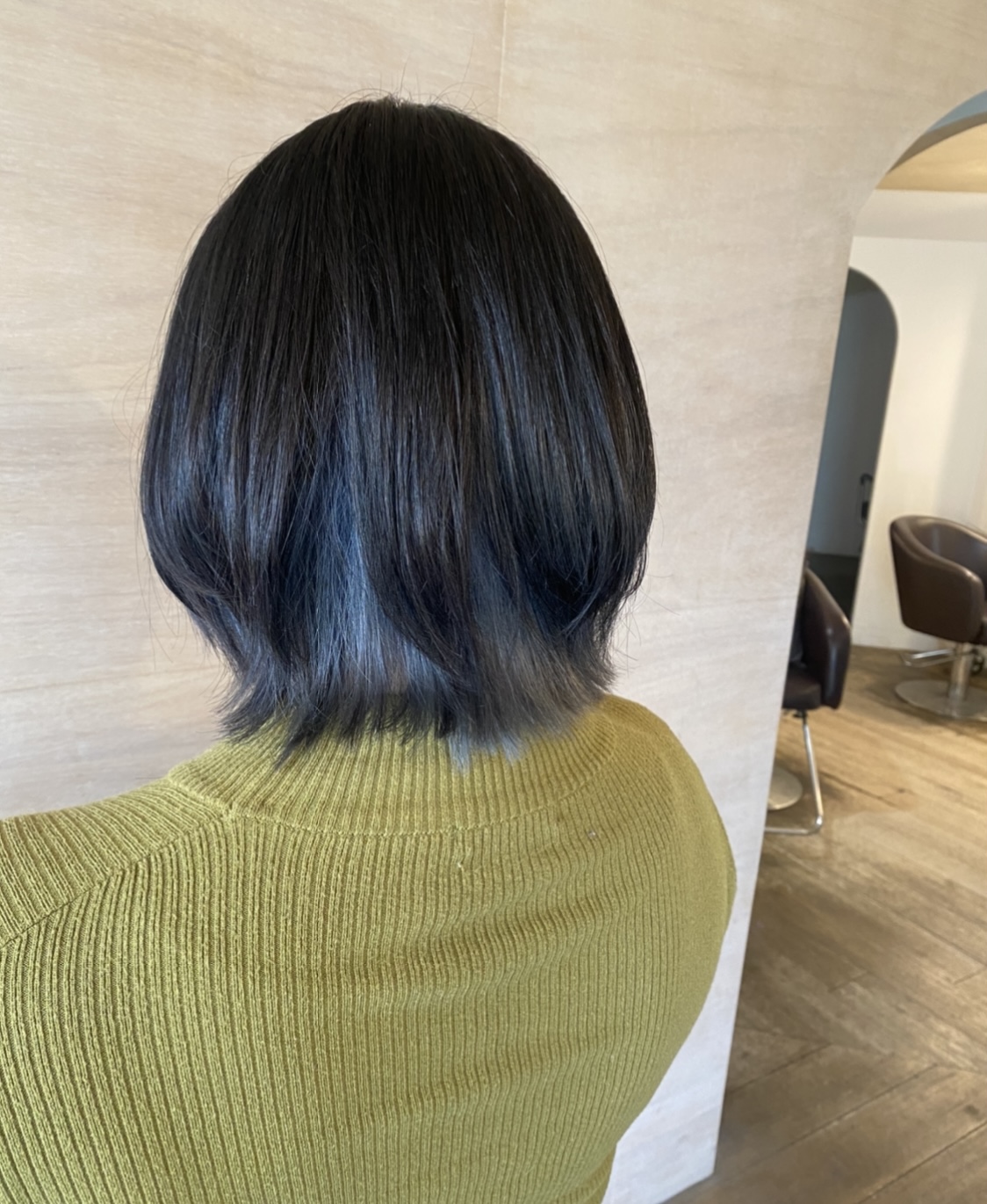 ブリーチ2回ベースに、ブルーを少し混ぜたグレーを入れました!