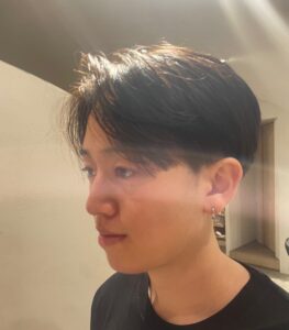 襟足が少しあることでワックスをつけて