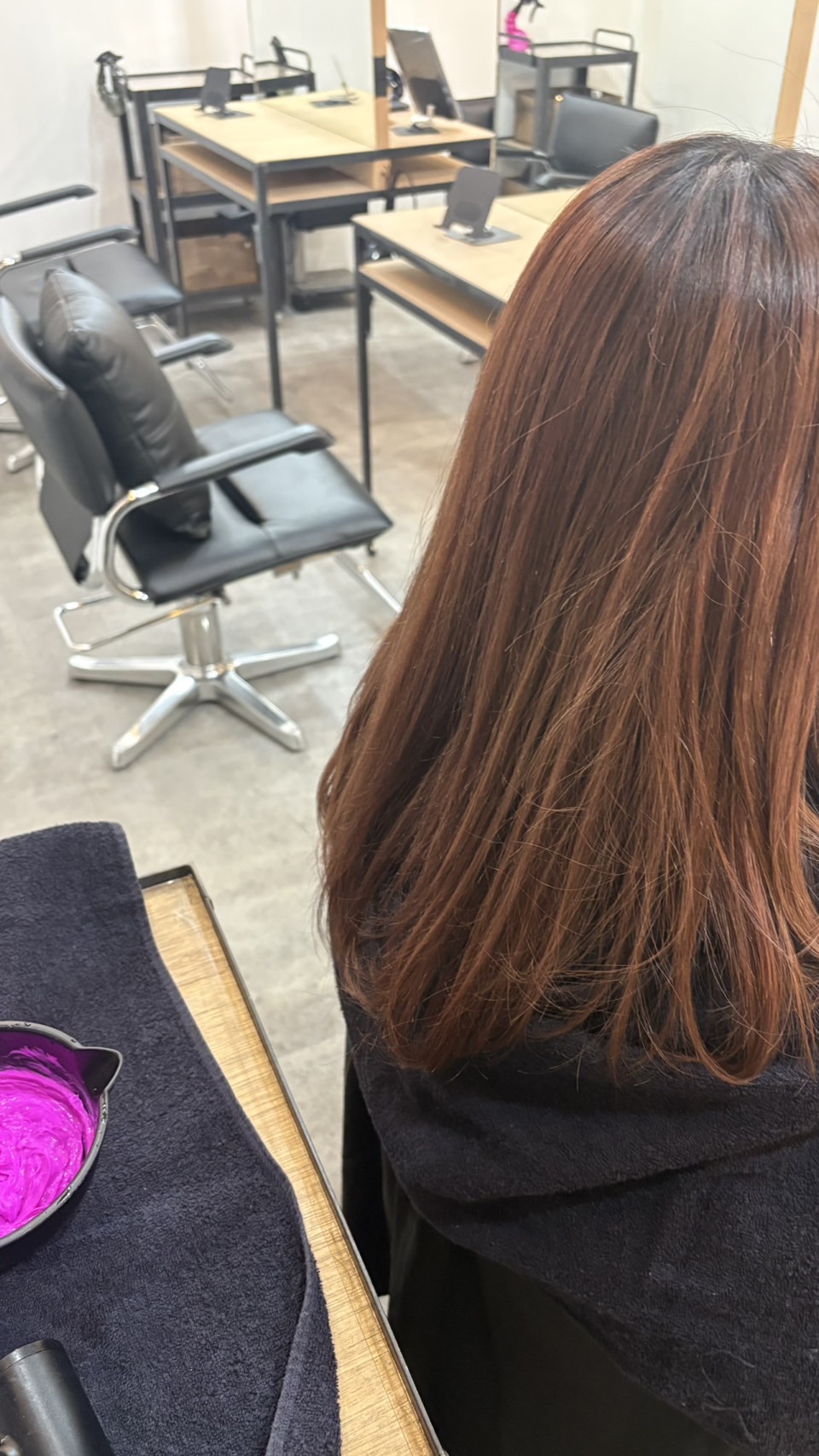 最近、アシスタント2年目の來にカラーをしてもらいました