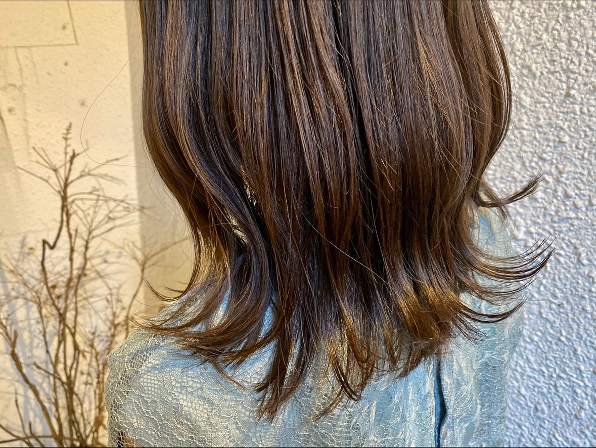 暗髪でも重たく見えず、ツヤと透明感をプラス!