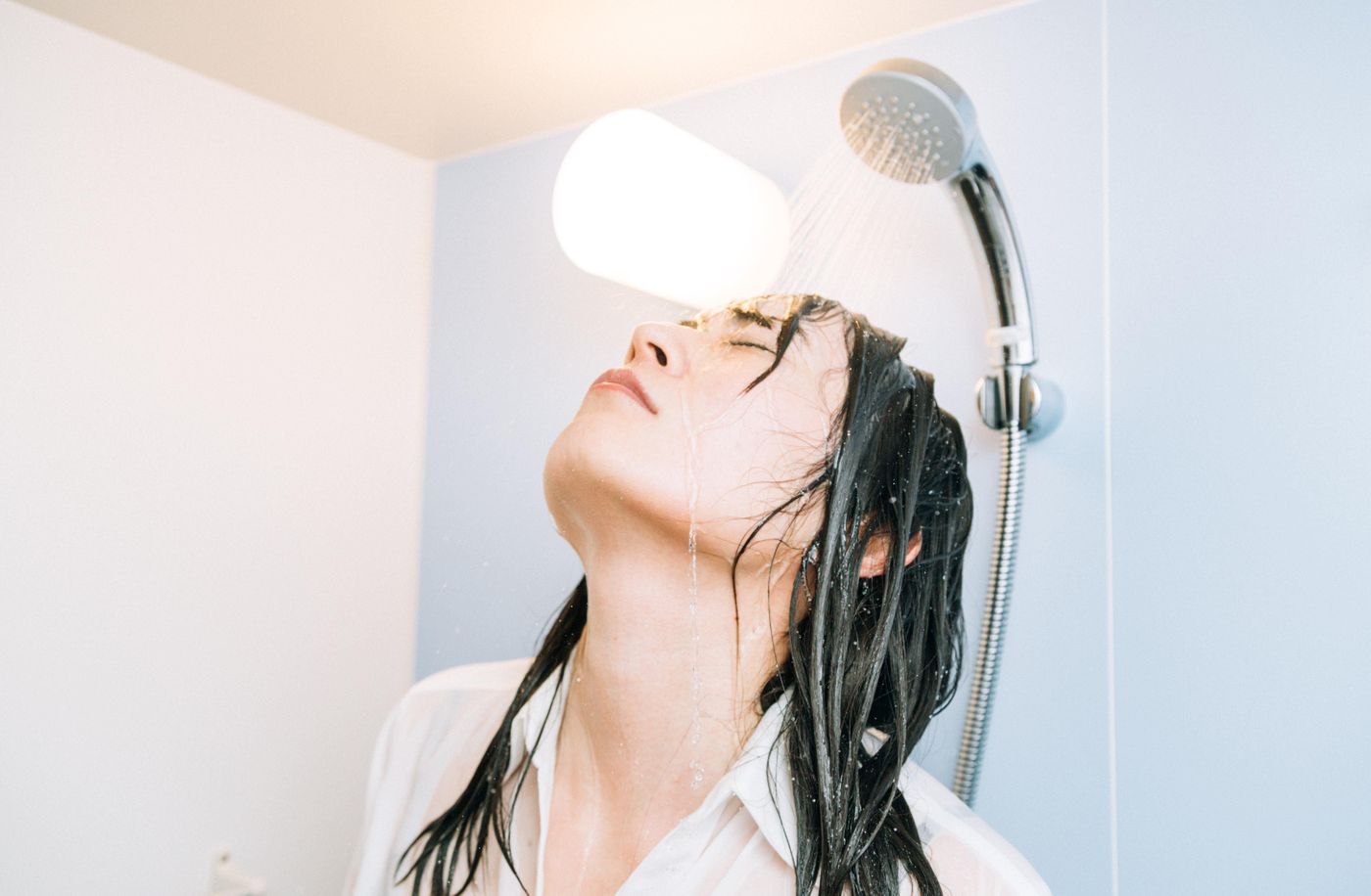 シャワーをややぬるめに設定する