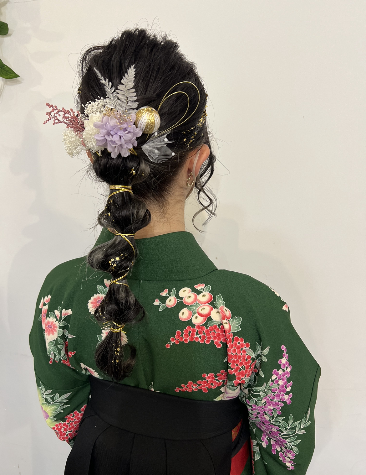 こんにちは 王子店の川野です! 先日卒業式を迎えられたお客様 緑の袴が すごく似合ってますね 髪型は編み込みダウンヘア 髪の...