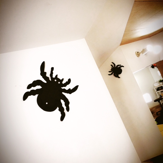 白い壁にクモの影を!