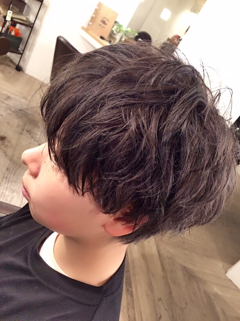 さらにカラーで透明感のある暗髪にして、ちょうどクセっ毛だったのでパーマっぽく仕上げました(^^)