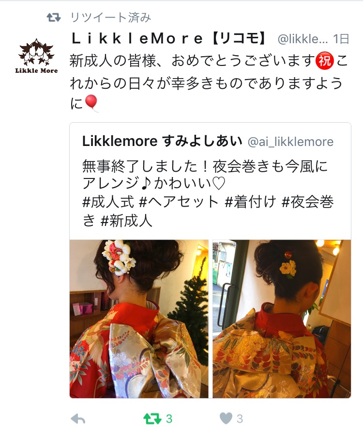成人式チームは早上がりで打ち上げに行ったそう!早起きで営業も忙しかったのにとても元気ですねΣ(゚ロ゚;).