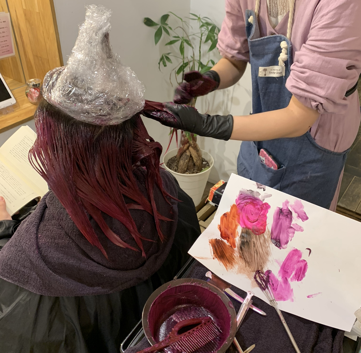 ベースの色に合わせて調合したカラー剤で、キレイに発色させます!