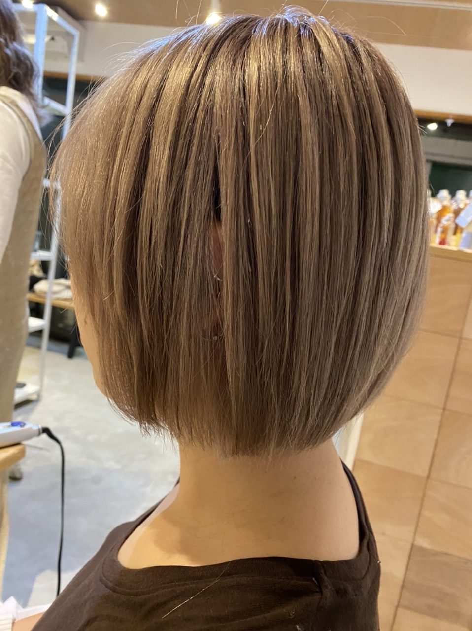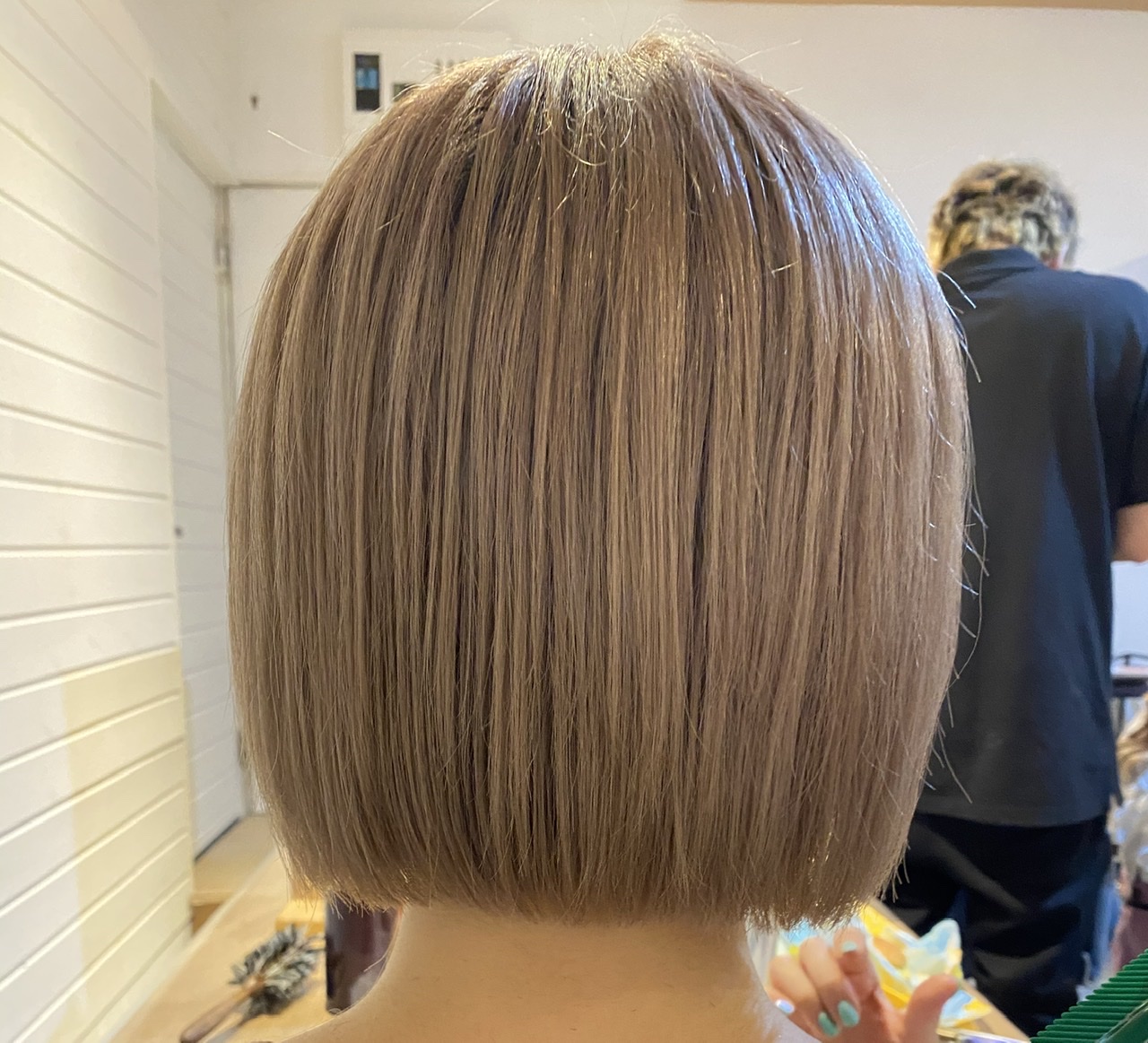 切りっぱなしボブはスタイリングの楽でまとまりやすいので